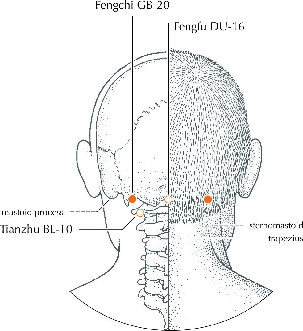 Galblaas 20 (FĒNGCHÍ – Wind Pool – 風池) zit aan de rand van je schedel, achter. “De poel van de wind”. Wind is een ziekmakende factor vanuit de Chinese geneeskunde, veroorzaakt verkoudheid of griep. Wanneer er een blokkade zit bij Galblaas 20, bijvoorbeeld door aangespannen spieren bij je kaak en nek, dan voel je dit bij het punt achterop je schedel.